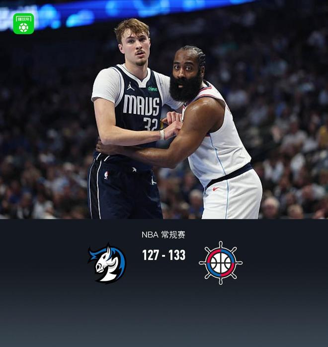 加时赛独行侠弗拉格拿下6分,快船哈登拿下10分,最终独行侠127-133不敌快船